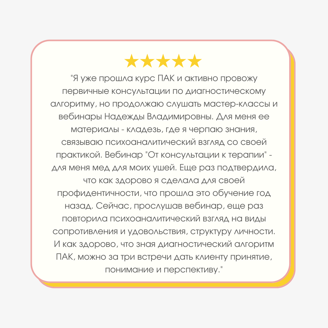 - Автор методики проведения психоаналитической консультации (ПАК)